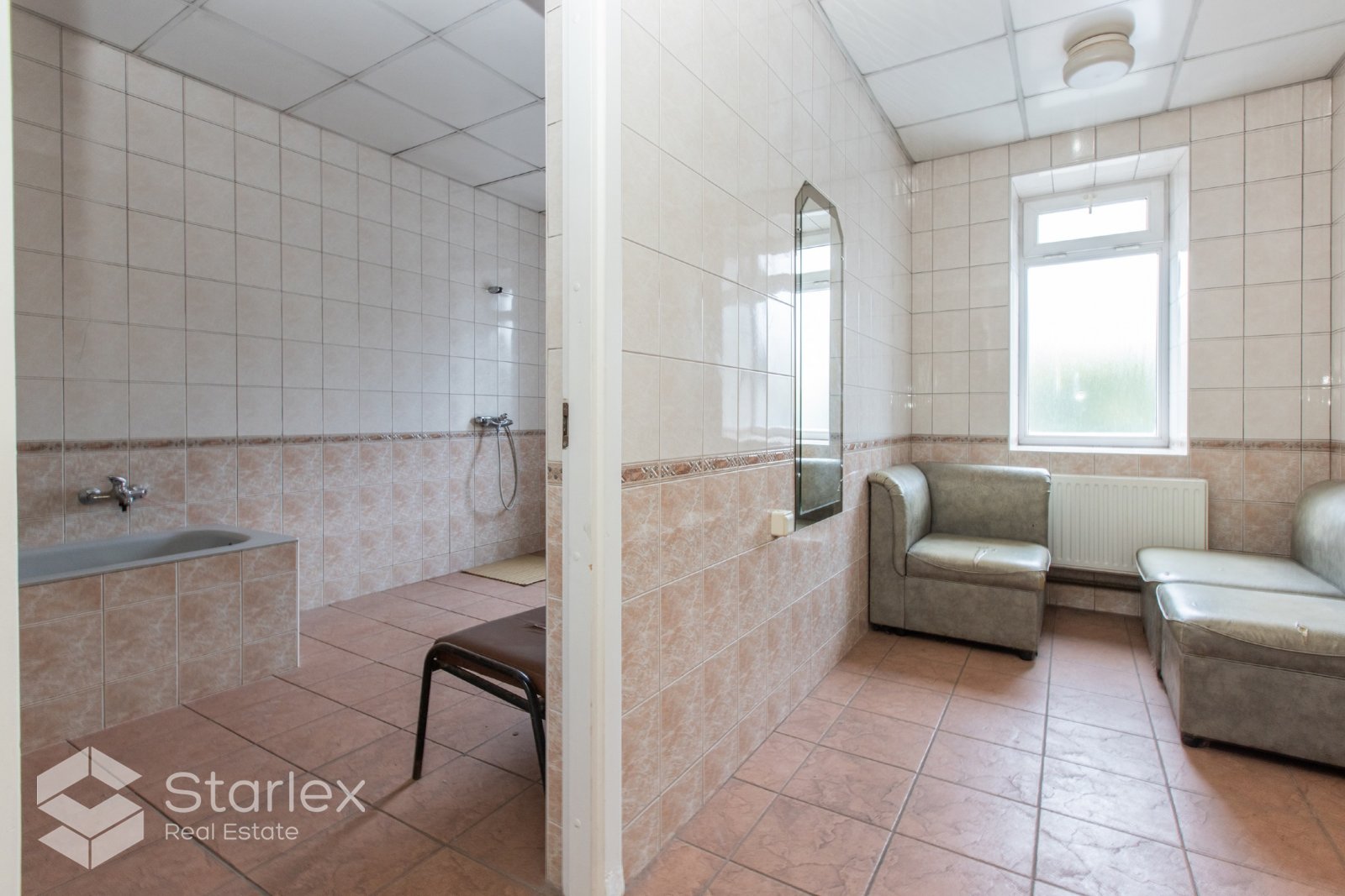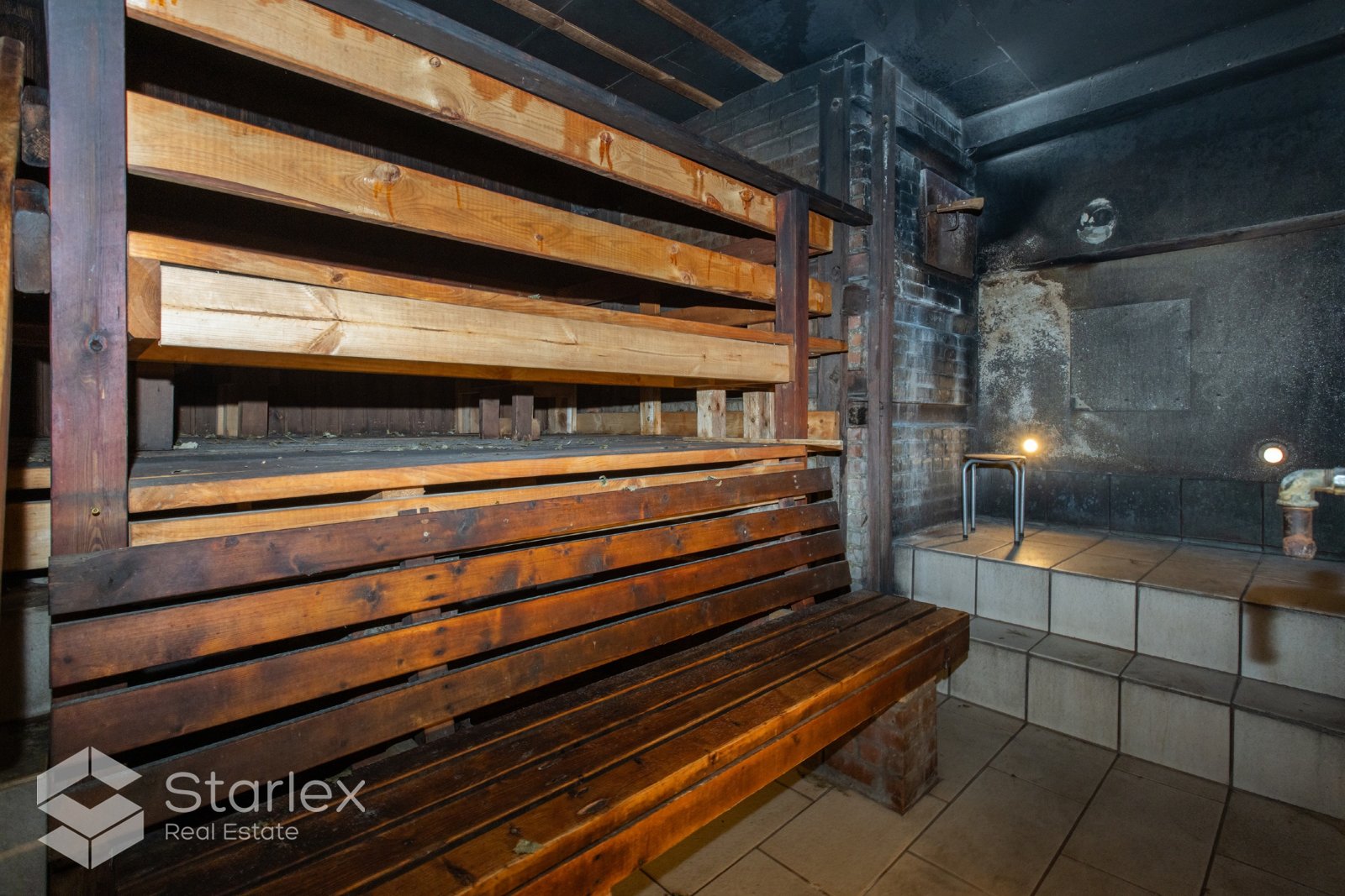 Pagrabstāvā ir divi lieli bloki - sieviešu un vīriešu pirts.