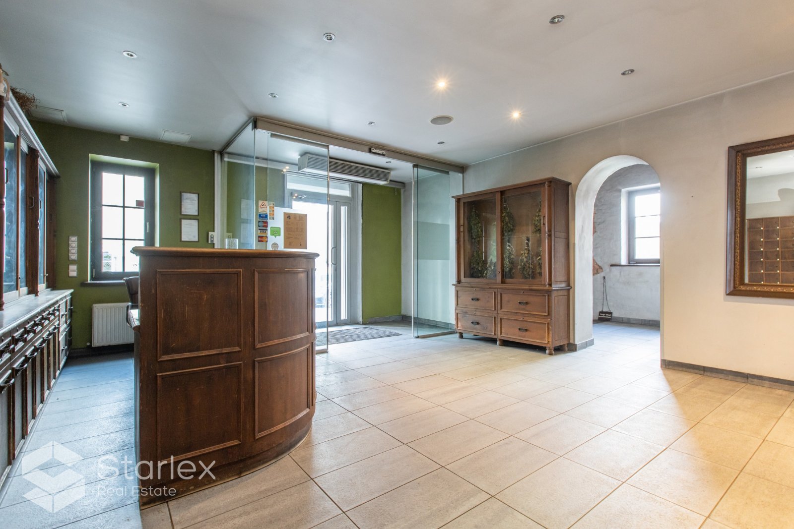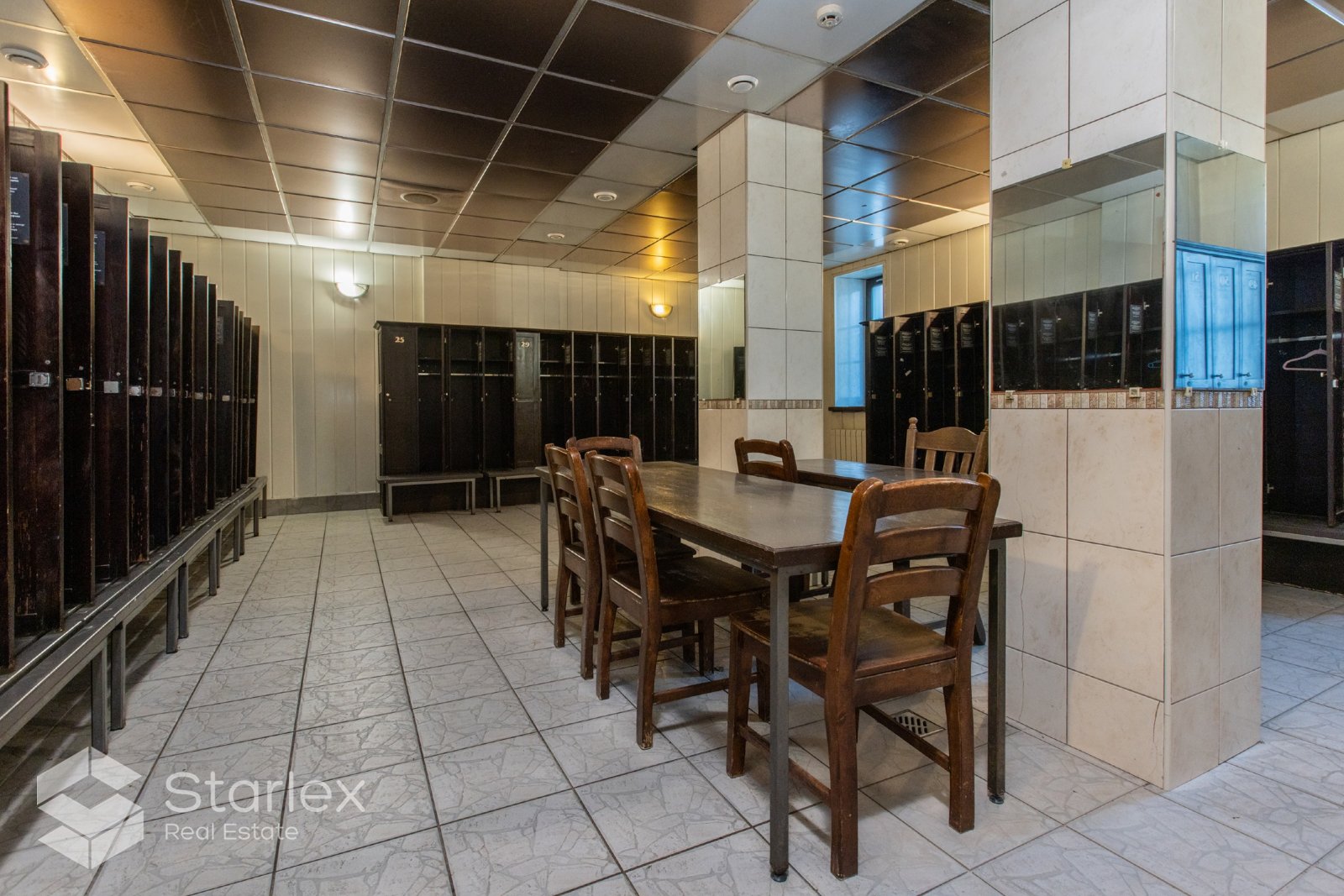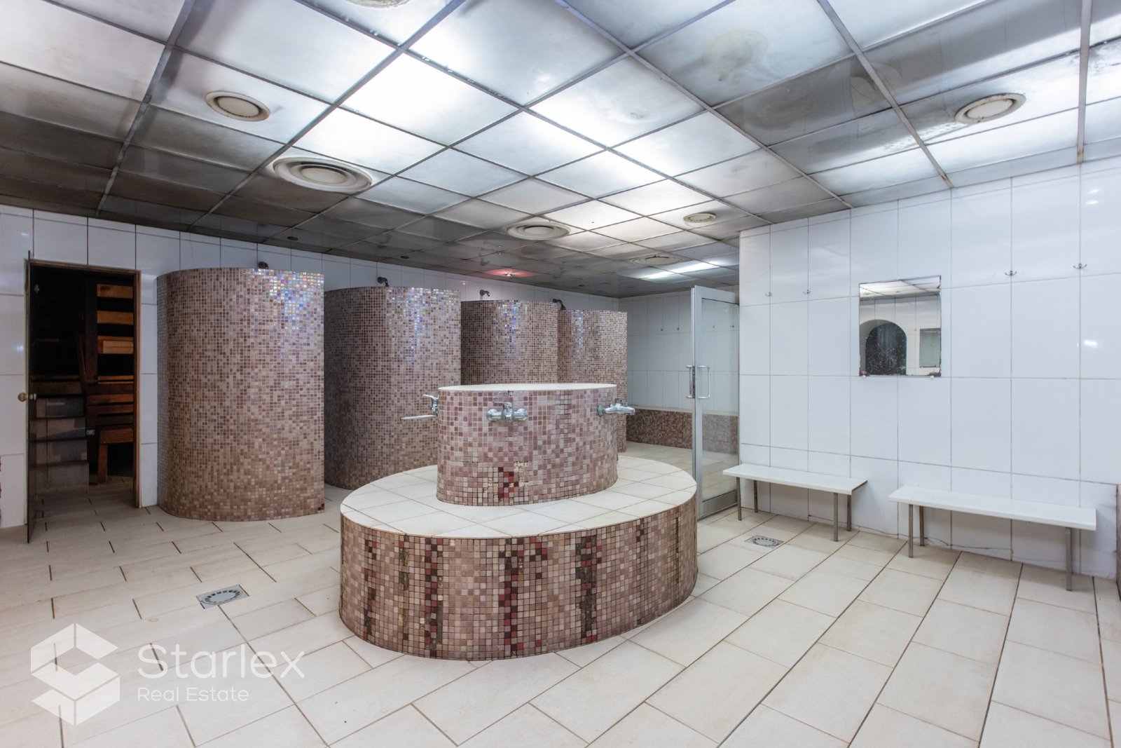 Ir vairāki vienvietīgi masāžas, kosmētikskie saloni. Biroja telpas.