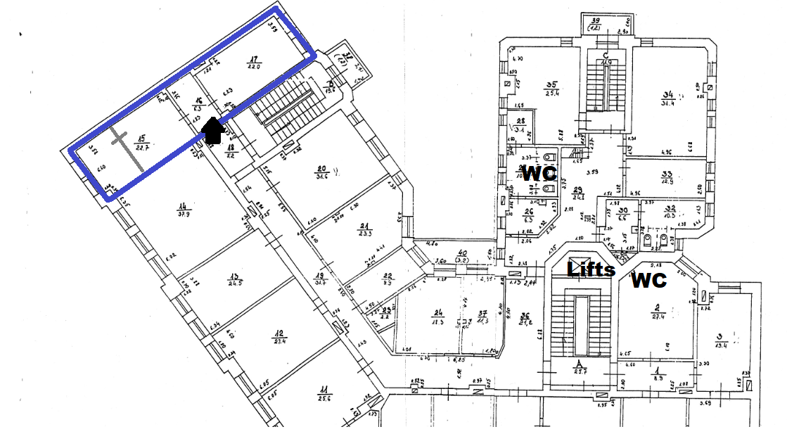 The premises are located on the 6th floor of the building, entrance from Citadeles Street, solid staircase, on-duty staff on the 1st floor.