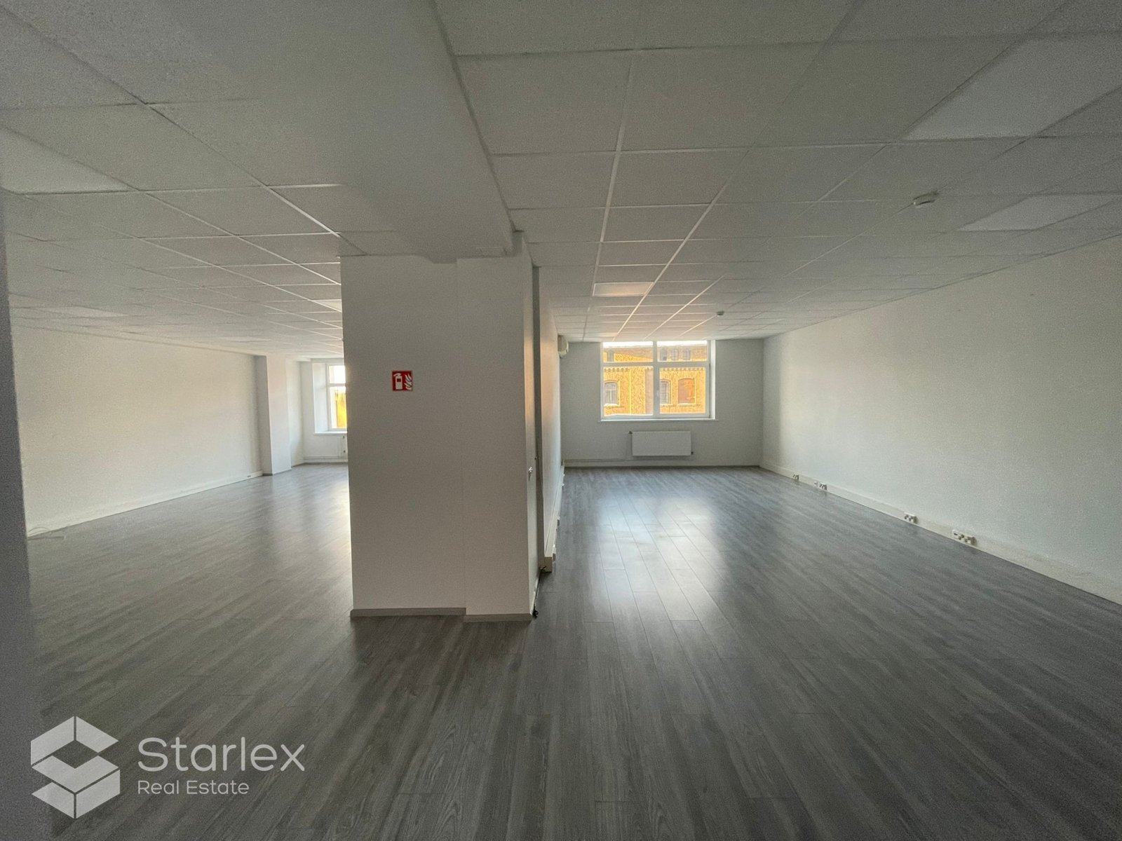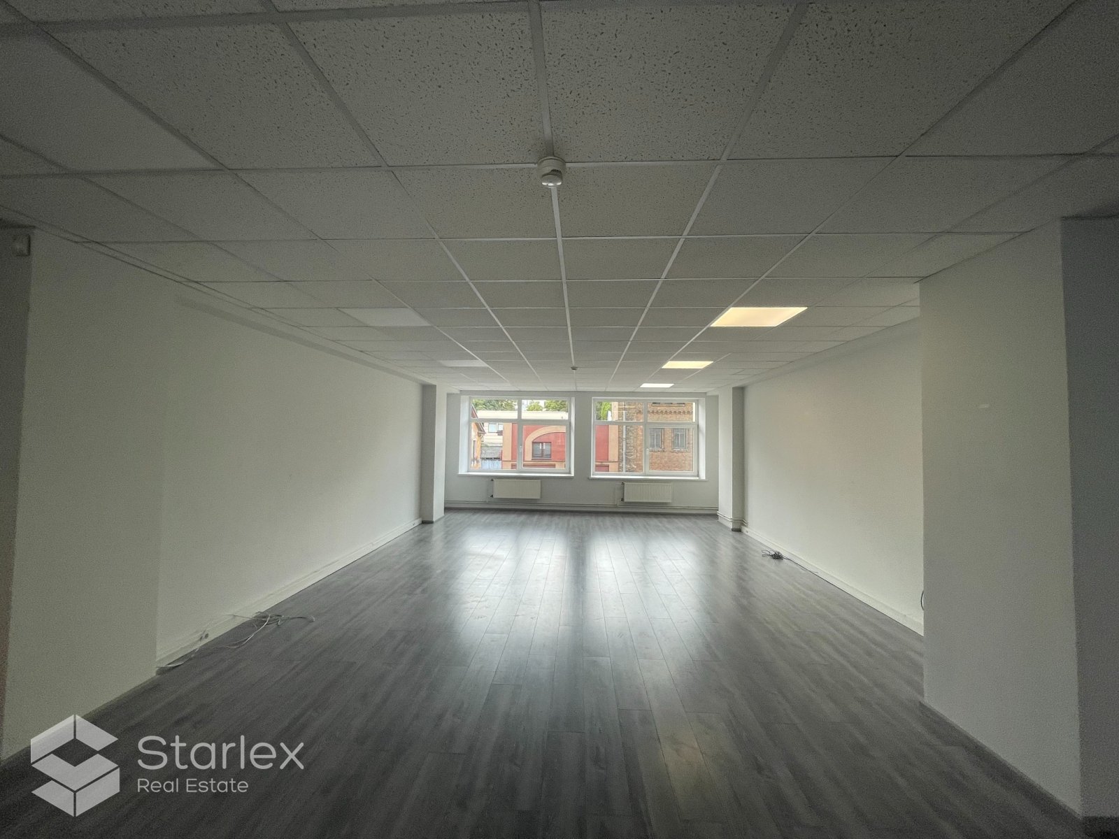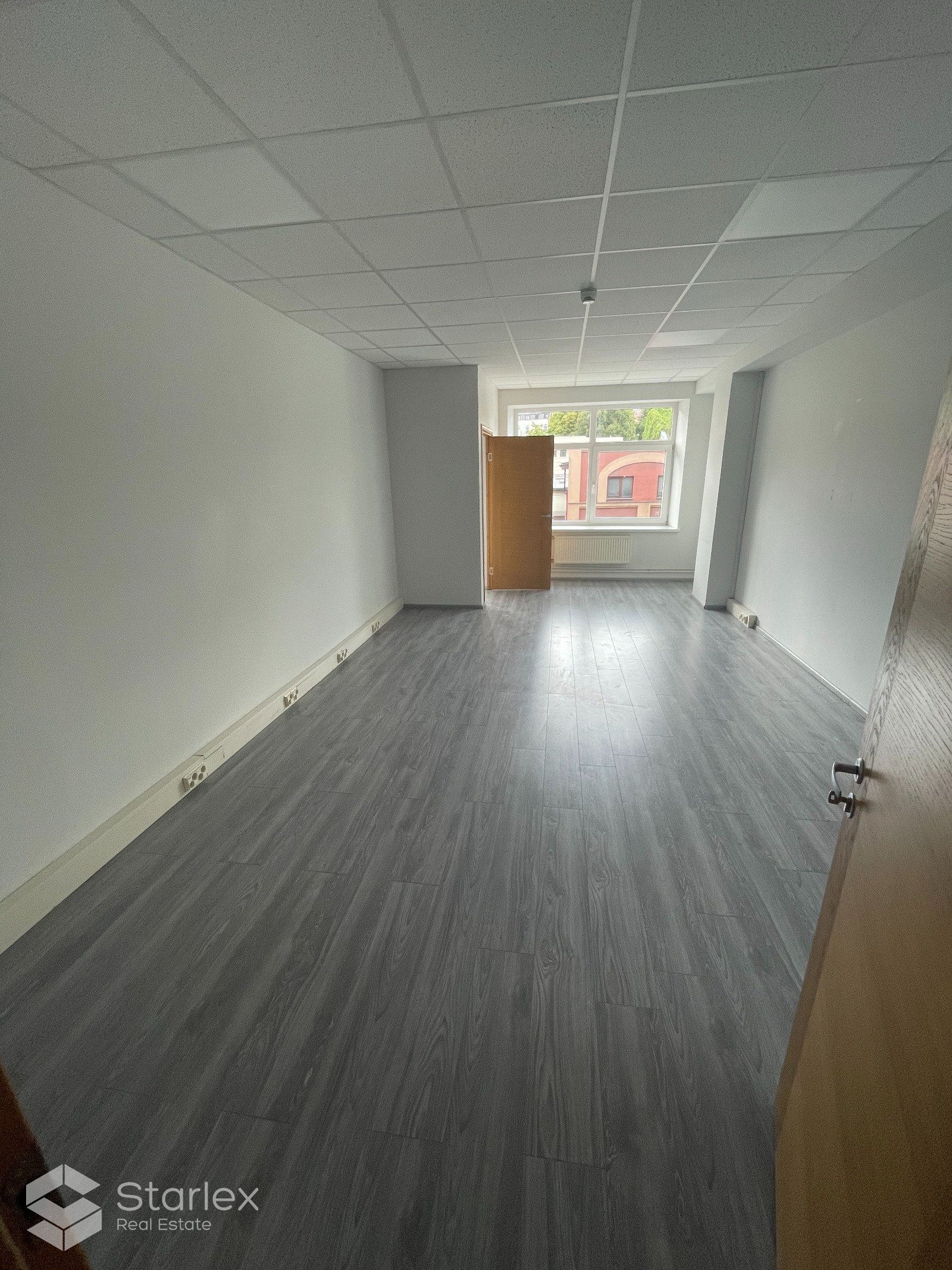 Skats pa logiem vērsts uz Elijas ielas pusi un arī uz pagalmu. Birojā uzstādīts kondicionieris, LED apgaismojums.