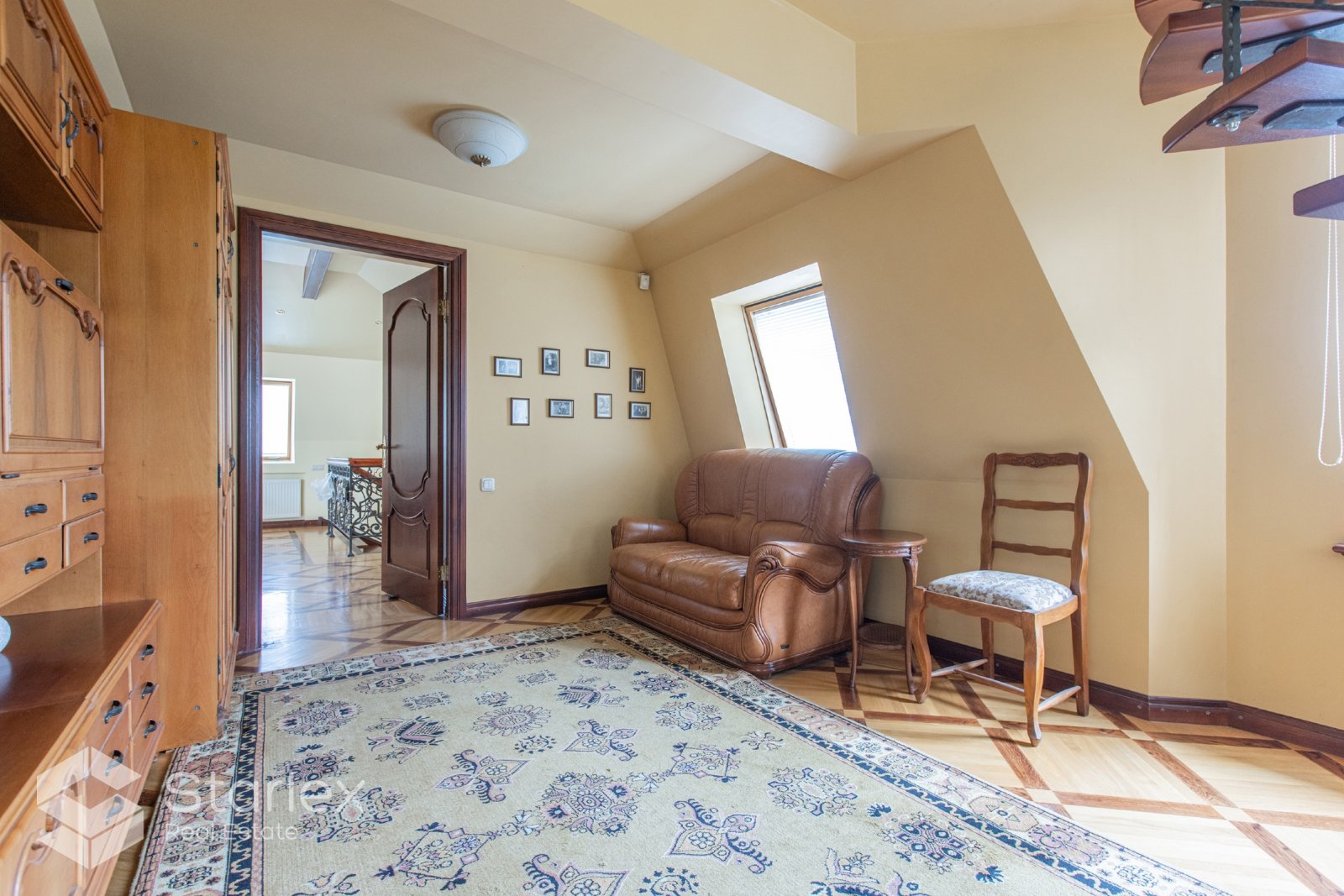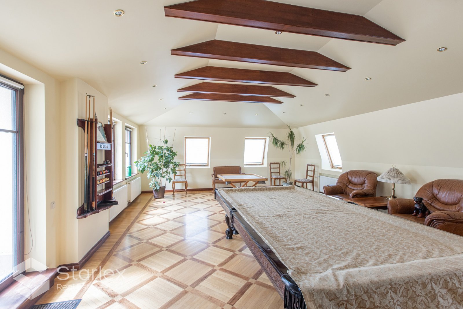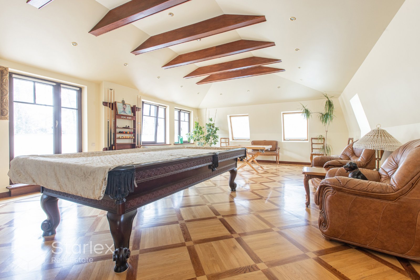 • Mājas trešajā stāvā un cokola stāvā izvietotas vairākas istabas viesībām un biljardam.