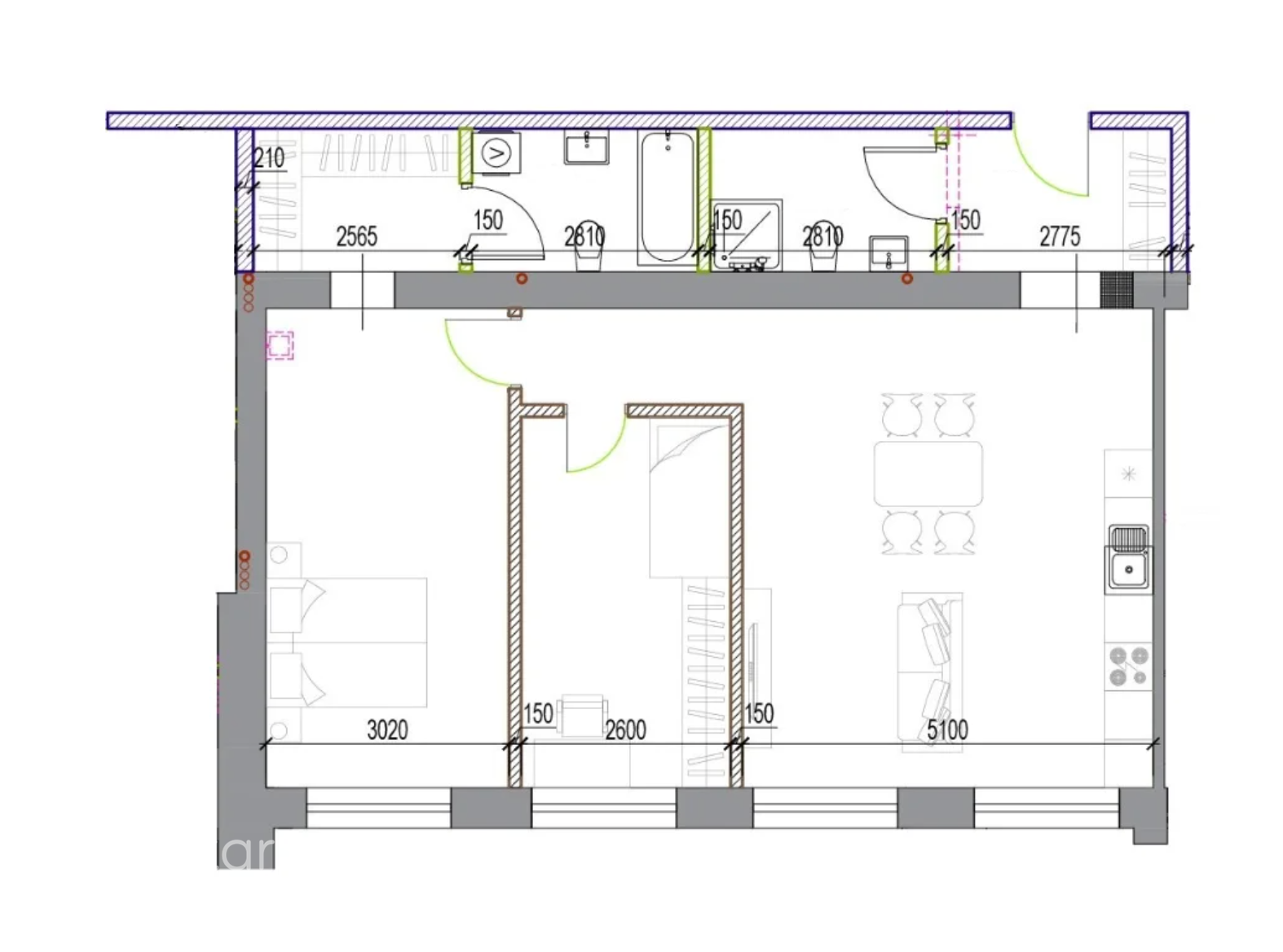 Dzīvoklis ar pabeigtu kvalitatīvu iekšējo apdari;